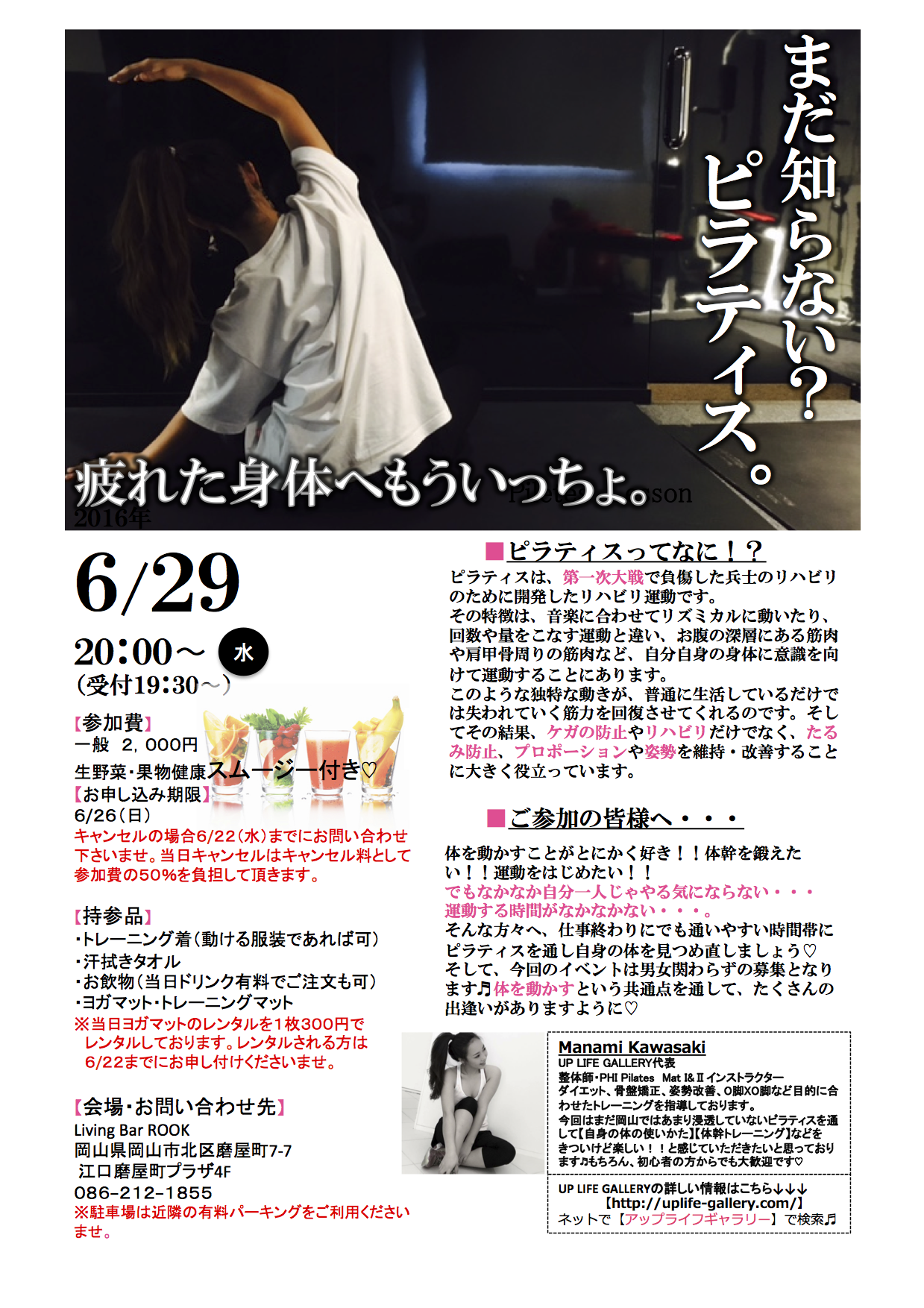 岡山♡ピラティスセミナー開催!!6月29日(水)20:00〜